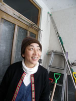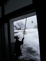 2人の腰にロープをつないで、この洗面所の上の屋根の雪を下ろす。(そーゆー写真はない。それどころじゃない)