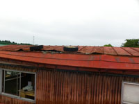 2階の屋根は、こんなふうに風でめくれあがっていた。