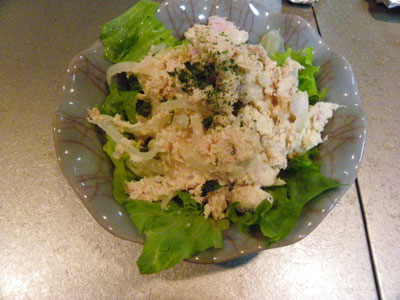 本来は、これをご飯にのっけて食べるのが「正調」なのだが、炭水化物オフ生活のボクら。こんなものにのっけて食べました。