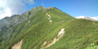 『来たアルプス、西穂高岳方面。山は涼しいぞ〜』