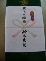 感謝の印はこうなった。ちなみに手前はボク。左がワイフ、右おばあ。