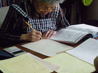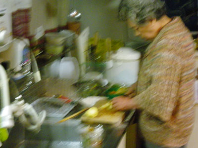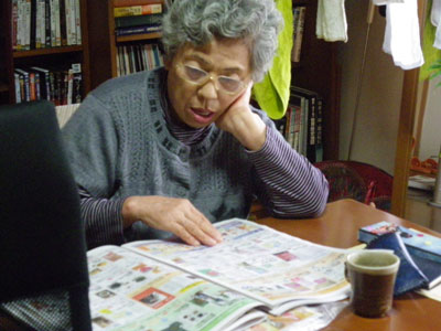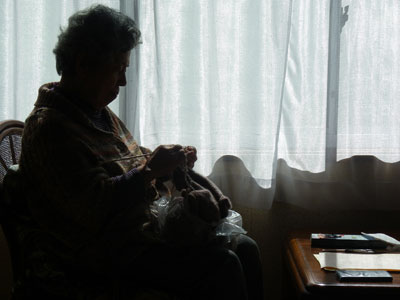 おばあちゃんは、もちろん、「編み編み」らしいですが、今現在は「生協のチラシ」を目をさらのようにして読んでおります。