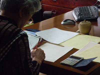 おやっ? 今度は計算機を持ち出して何やら計算を始めましたよ。「イチマンヨンセンエン・・・」とか何とかブツブツ言ってます。何か買う気だな。