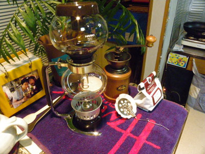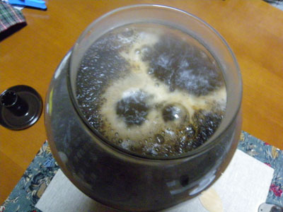 下のボールへコーヒーとなった水が戻されます。見てて楽しいね。