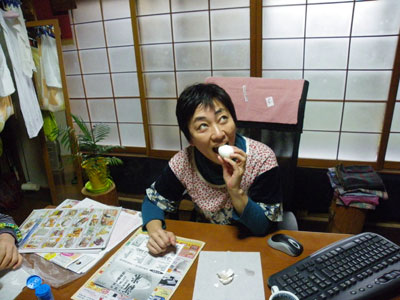 手前の人も「編み編み大臣」だからいいんだってえ〜。食べてもお〜。体重大丈夫? 知らんよ。
