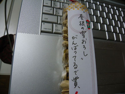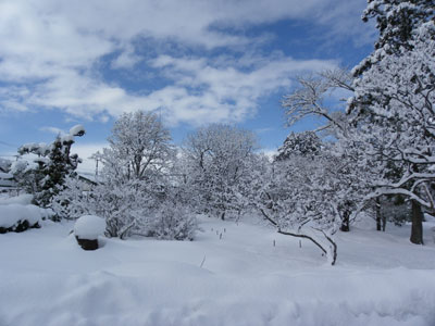昨日コーゾーさんの弟のミッツさんが、難儀なことに、小屋のほうの屋根の雪下ろしをしてくれたばかりなのに、またこんなに積もってしまった。それにしても、これじゃあ完全に「屋根より高い鯉のぼり」、ちゃう「雪の山」ではないか。見えずらいけど。