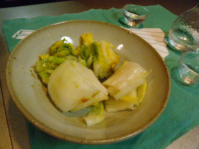 まず、大根と白菜を手に持ちます。