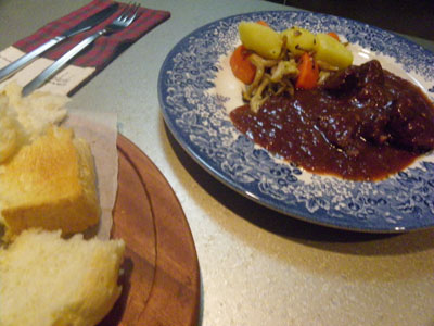 お魚食が続いていたので、おとといはダイサンで買ってきた牛すね肉(313円)で『ビーフシチュー』を食べました。