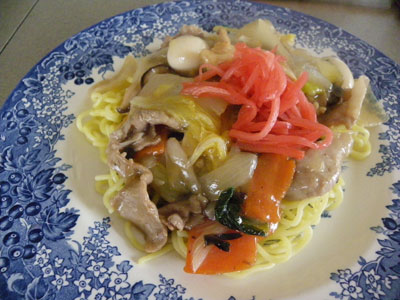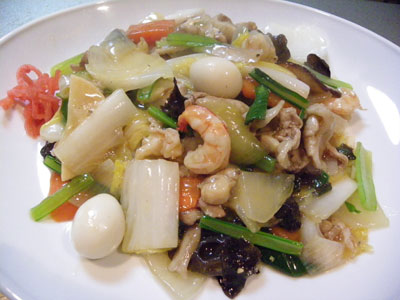 「五目中華あんかけ」を焼そばにかけて、お昼に食べた『五目あんかけ焼そば』。
