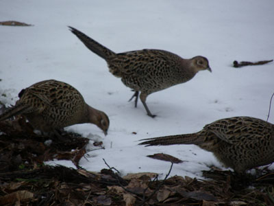 朝6時前、雪が融けて土が顔をのぞかせた隣人の広い庭にアノ鳥がいた。