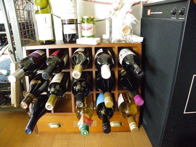 そんなわけで、いつもこの棚に少なくとも何本かのワインがある暮らしを続けていきたいと、それだけを人生の目標に(といったらオーバーだけど)頑張って働いているわけです。