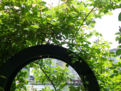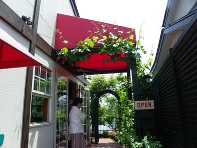 この写真は、いつもお世話になっている『チーズ&ワインアベ』さんのショップサイドガーデンの『バラ」のアーチ。