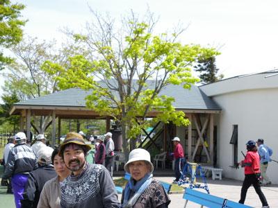 そんな道沿いの景色を眺めながら、おばあちゃんは「豆大福」、ボクは「草餅」、妻は「天津栗」を食べながら会場へ着くと、テーブルの上にはトロフィーが乗っているし、マイクの声が鳴り響いているところをみると、これは明らかに何かの大会の「表彰式」の場面に行き会わせたようであった。