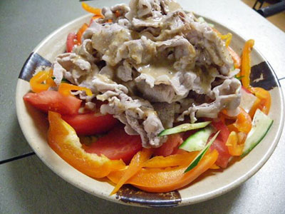 ボクは、バテてくるとミョーに「カツ丼」が食いたくなるタイプなのだが、手短かなところで夕べは『豚しゃぶ』食べました。