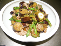 具材は「ゴーヤー」「ナス」「人参」「豚肉」「豆腐」。