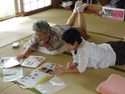 おばあちゃんたちの姿を見て、赤いトラクターの音を聞いた。