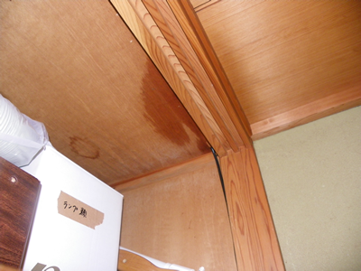 今朝、気になって天袋の上を見ると、幸いなことに雨漏りはしていなかった。