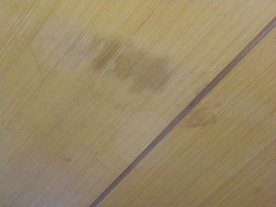 まさに、ボクが寝ている足元の辺りの真上の天井にシミにようなものが。。。