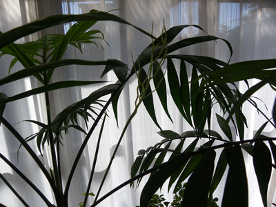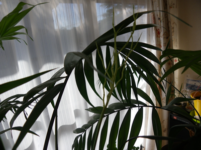 ネットで調べた妻によれば「テーブル椰子」の花言葉は「見守る」だそうである。