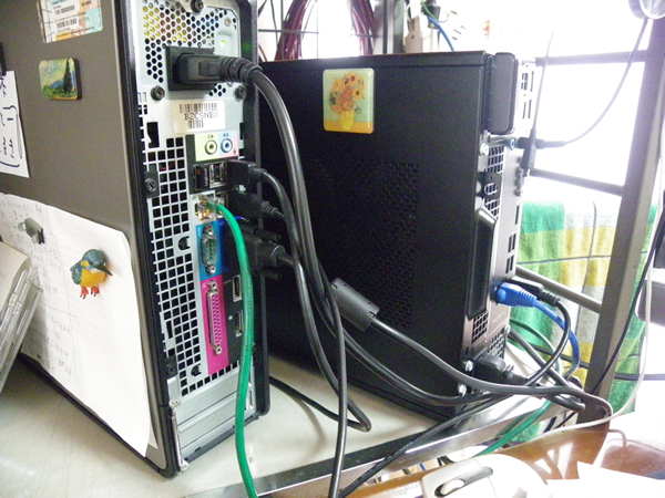 2台のパソコンはそれぞれ担っている作業分野が違うので、2種類の仕事を切り替えるときは、こうしてディスプレイジャック等々を交換しなければならないのだ。