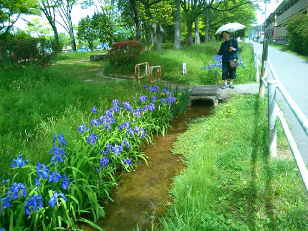 そんな中にも田んぼはところどころにあり、植えたばかりの小さな苗と苗の間を「カルガモ」のつがいが泳いでいた。