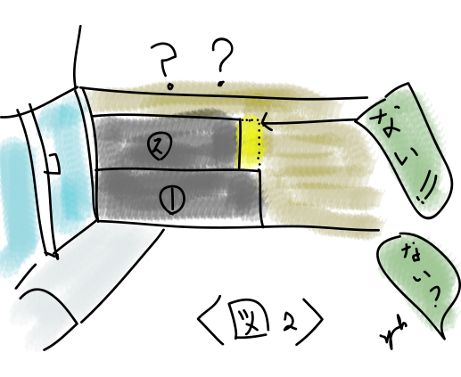 ボクは時々、寝ぼけたままでシャツを着たバアイにこの格好になって困るのだが、この態勢はやりにくい。ヒジョーに動きづらい。