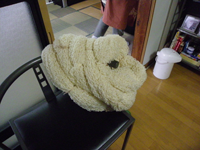 これから、これにお湯を通して、毛を真っ直ぐにし、新たなセーターを編み始めるのだという。