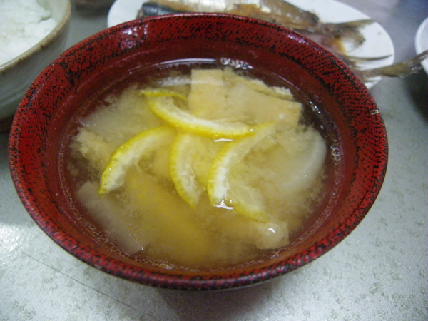 そして大根と油揚げの味噌汁に、たっぷりの柚子を載せ。