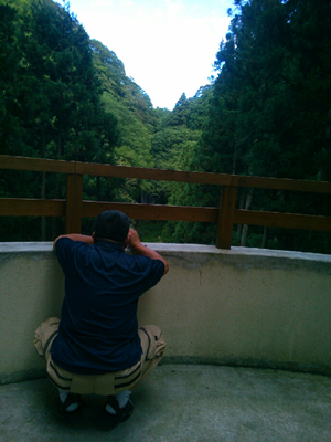 それから川辺の山の中を走り「ここが自分だけが知る、秋田市で最も素晴らしい景色!」と太鼓判を押す場所に向かったが、行ってみると、そこは10月まで閉鎖されていることが分かり、こったんはたいそうショックを受けていた。また秋に来る気満々だった。
