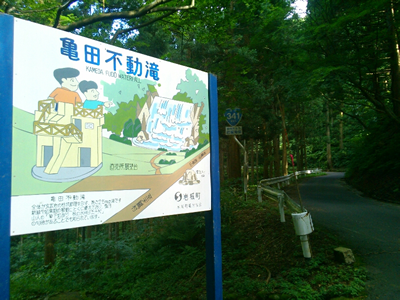 それからまたナビにおちょくられながら、山道を走り、本当は真田家の姫の「おまん」とかいう人のなんちゃらに行く予定だったのが、なぜか「亀田不動滝」に来ていた。