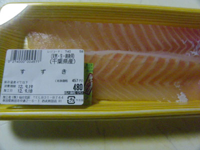 どちらも大きくて、しかもこの上なく美味い魚である。魚通のボクが言うのだから間違いない。昨日はスズキさんの刺身を5切れほど食ったがメチャ美味かった。